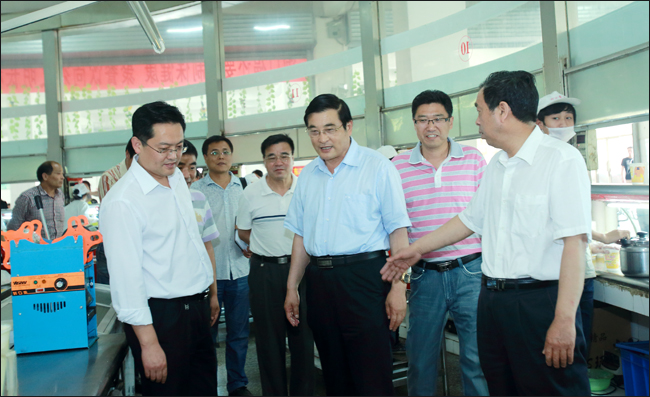 在视察过程中,周书记反复叮嘱随行人员和饮食管理、服务人员,要牢固树立为师生服务的思想,搞好食品卫生安全,确保食堂饭菜质量和价格稳定,切实保障师生的就餐需要。周书记指出,当下时节正是食物中毒及各类传染病的高发期,后勤服务部门要切实负起责任,做好饮食就餐服务工作,严明管理制度,严格执行食品卫生安全操作规程,确保食品安全,让广大师生在食堂吃的放心、吃的舒心。同时,要尽可能丰富菜品种类和花色,不断改进饭菜口味,满足不同档次的用餐需求;要营造良好用餐环境,让师生时时感受到文明温馨温暖的氛围,打造服务育人的食堂文化,促进校园和谐。
